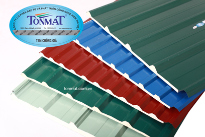 Trong khi đó, tôn sóng vuông chỉ cần độ dốc 3o. Tấm lợp có lớp mạ hợp kim nhôm – kẽm bảo vệ chống rỉ cho lớp thép nền. Tuổi thọ của mái tôn phủ thuộc chủ yếu vào lớp mạ phủ chứ không phải do chiều dày lớp thép nền. Lớp phủ cũng hạn chế nhiệt lượng mặt trời xuyên qua, làm không khí dưới mái mát mẻ hơn. Trên cùng lớp mạ nhôm kẽm là sơn lót epoxy và trên nữa là lớp sơn màu, chịu được mưa nắng trong nhiều năm.