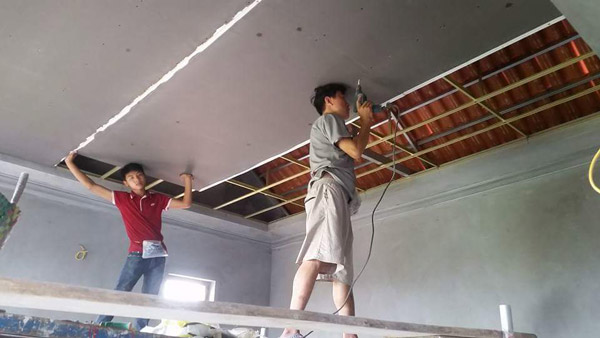 Trong trường hợp mái bê tông đã ốp gạch đỏ thì có thể thi công theo phương án sau: