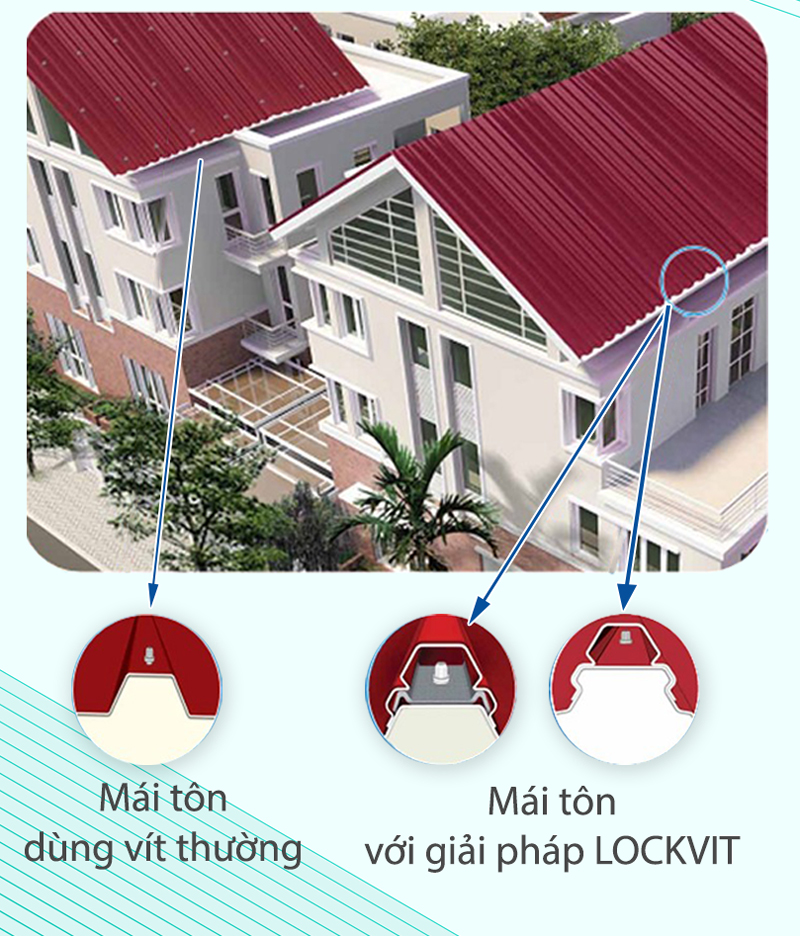 - Nâng cao tuổi thọ công trình: Vít không bị tiếp xúc với nước nên giảm nguy cơ vít và mái lợp bị gỉ sét